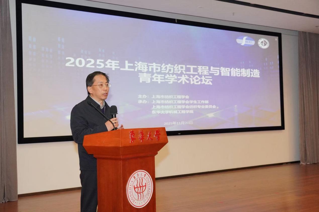 2025年11月20日,由上海市纺织工程学会主办,上海市纺织工程学会学生工作部、上海市纺织工程学会纺织专业委员会、必赢中国官方网站承办的“2025年上海市第二届纺织工程与智能制造青年学术论坛”在必赢中国官方网站松江校区复合材料协同创新中心第一报告厅举行。出席本次论坛的嘉宾有:上海市纺织工程学会副理事长兼秘书长马平春,必赢中国官方网站党委书记、上海市纺织工程学会纺织专业委员会主任、学工部部长王新厚,上海市纺织工程学会纺织专业委员会副主任、东方国际(集团)有限公司教授级高工杜卫平,上海工程技术大学教授林兰天,必赢中国官方网站副院长裴泽光、白涛等。